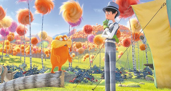 To find it he must discover the story of the Lorax the grumpy yet charming creature who fights to protect his world.